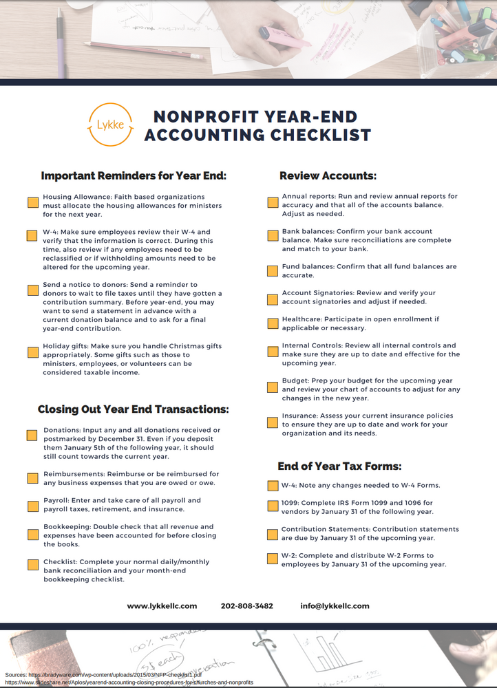 Year End Accounting Checklist For Npos And Charities